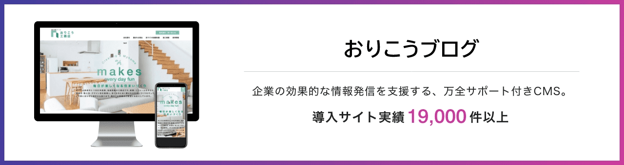 「おりこうブログ」は、企業向けホームページ作成ソフト(CMS)として、使いやすさと効果的な情報発信機能など、10年以上に渡り改善を重ね、現在までにシリーズ累計で全国19,000件以上のお客さまに導入・ご愛用いただいております。